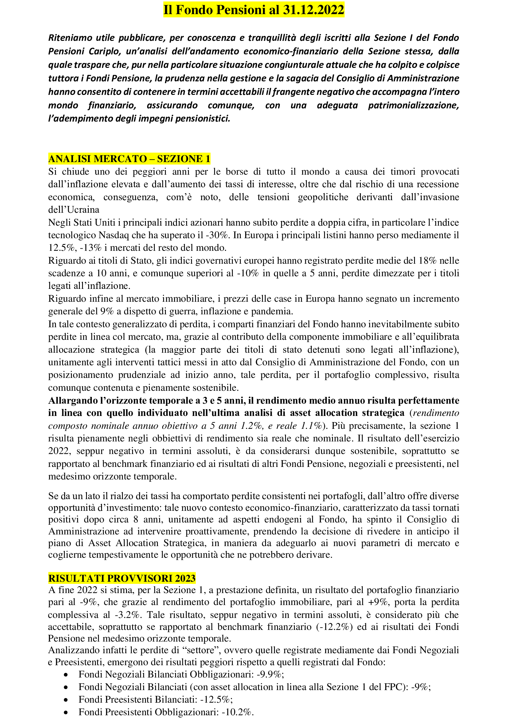 Coloro che percepiscono anche l'integrazione del Fondo Pensioni, avranno un adeguamento in parte sulla pensione INPS, mentre la restante parte avverrà, se dovuta, nel mese di giugno 2023 con i relativi arretrati.