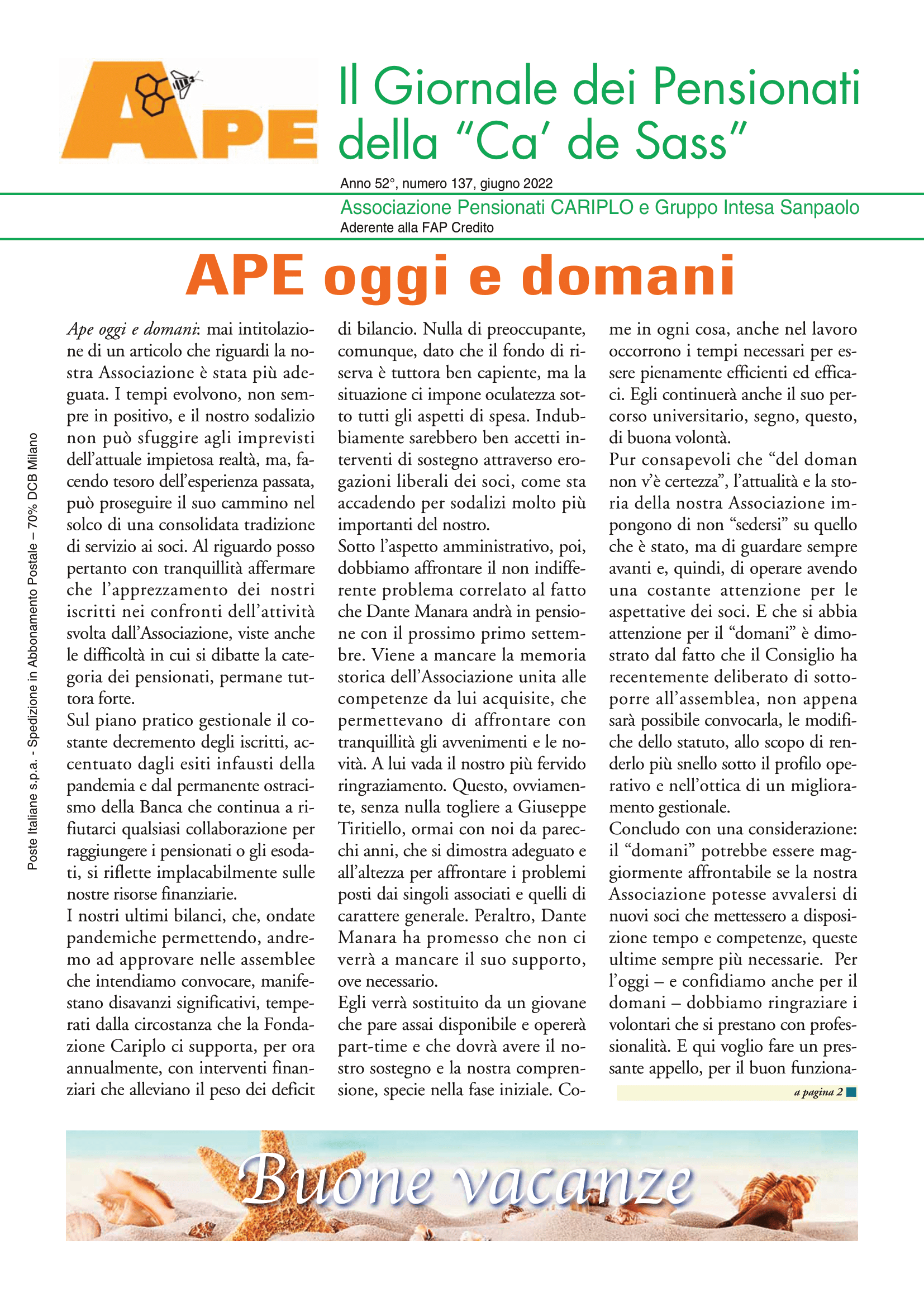 GIORNALE DEI PENSIONATI DELLA "Cà de Sass" N° 137
