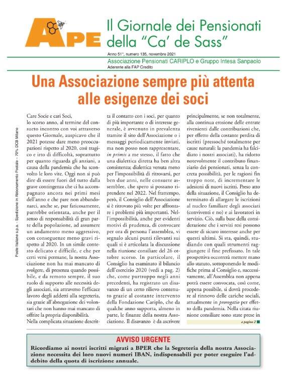 GIORNALE DEI PENSIONATI DELLA "Cà de Sass" N° 135