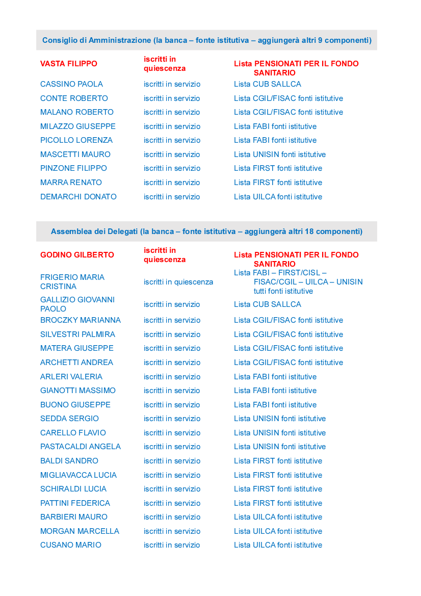 Publichiamo qui di seguito i risultati delle elezioni negli Organi amministrativi del Fondo Sanitario.