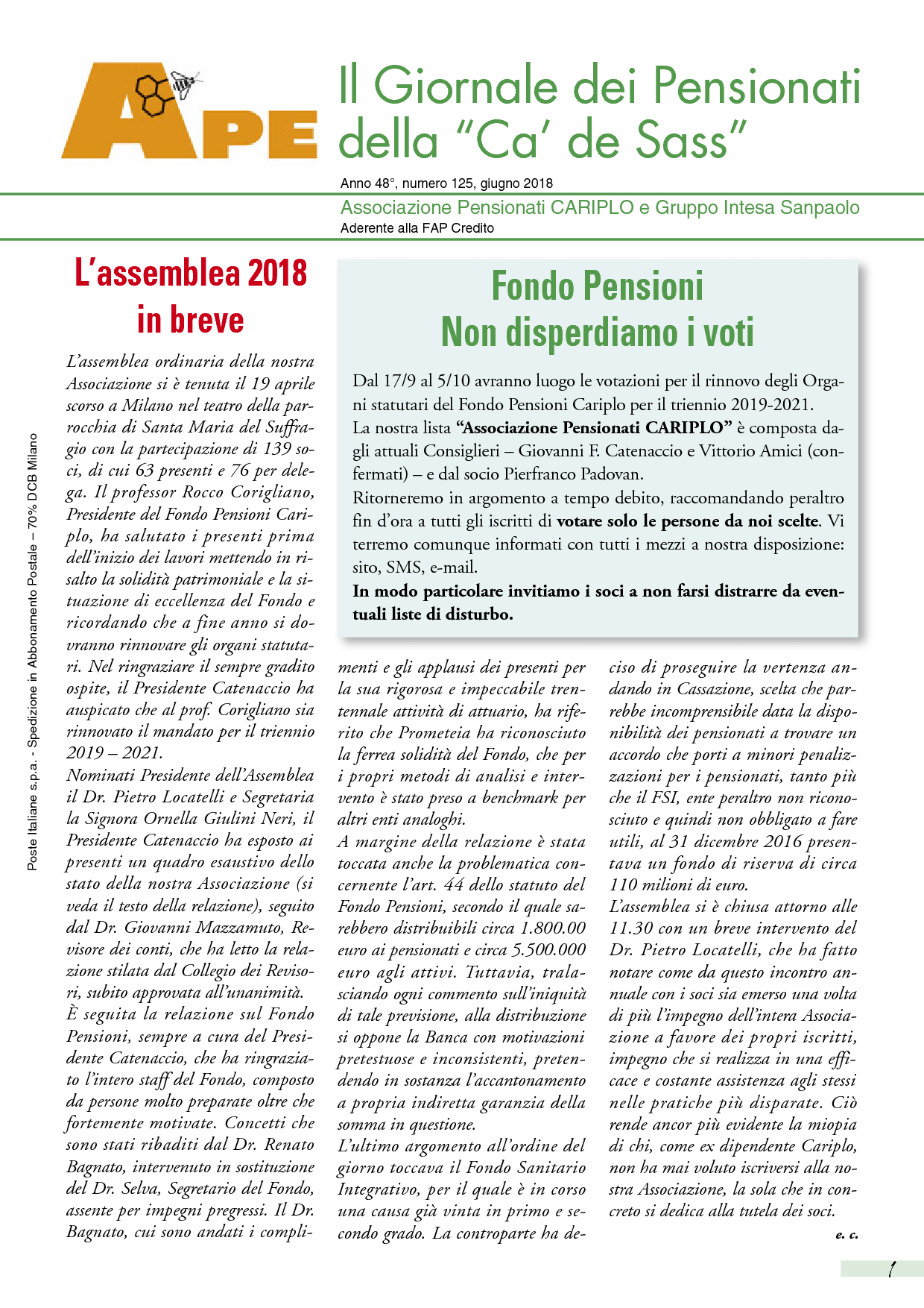 Associazione Pensionati CARIPLO e Gruppo Intesa Sanpaolo