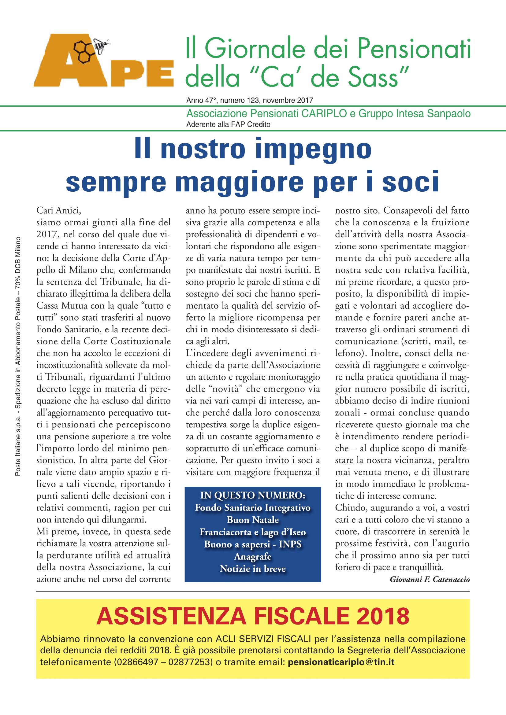 GIORNALE DEI PENSIONATI DELLA "Cà de Sass" N° 123